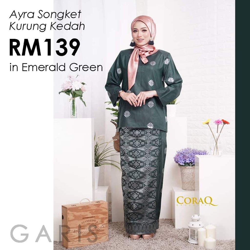 Ayra Songket Kurung Kedah In Emerald Green Shopee Malaysia