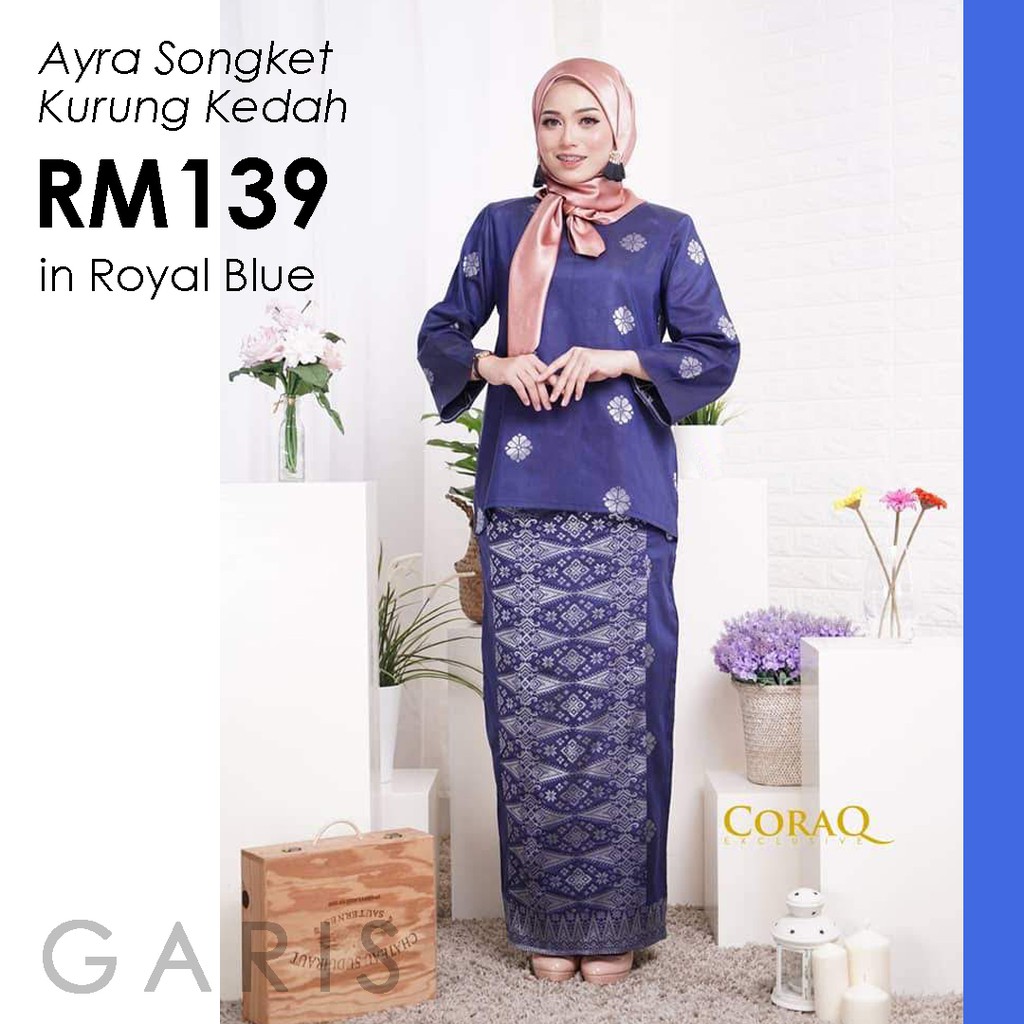 Readystock Ayra Songket Tenun Kurung Kedah In Royal Blue Shopee Malaysia
