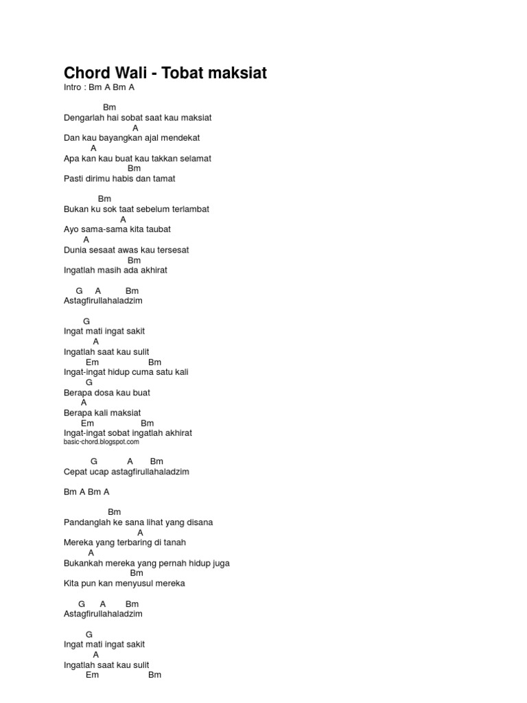 Chord Kunci Gitar Lirik Lagu Tobat Maksiat Wali Band Ingat Mati Ingat Sakit Tribun Padang