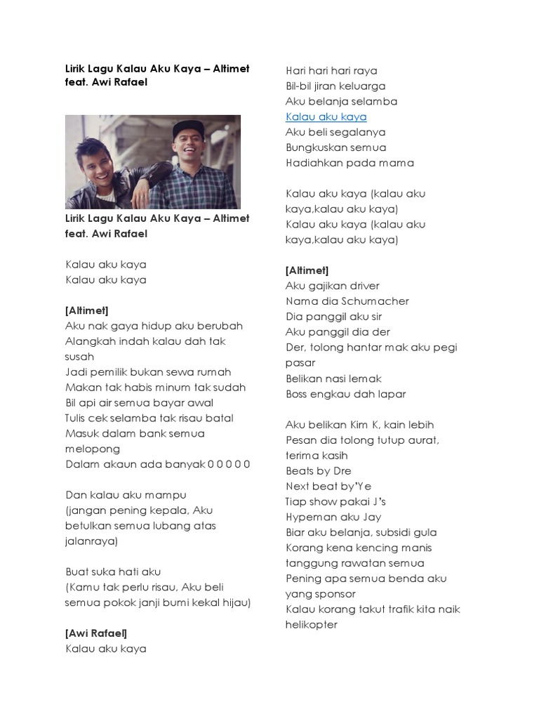 Altimet Kalau Aku Kaya Feat Awi Rafael Lyrics Lyrics My