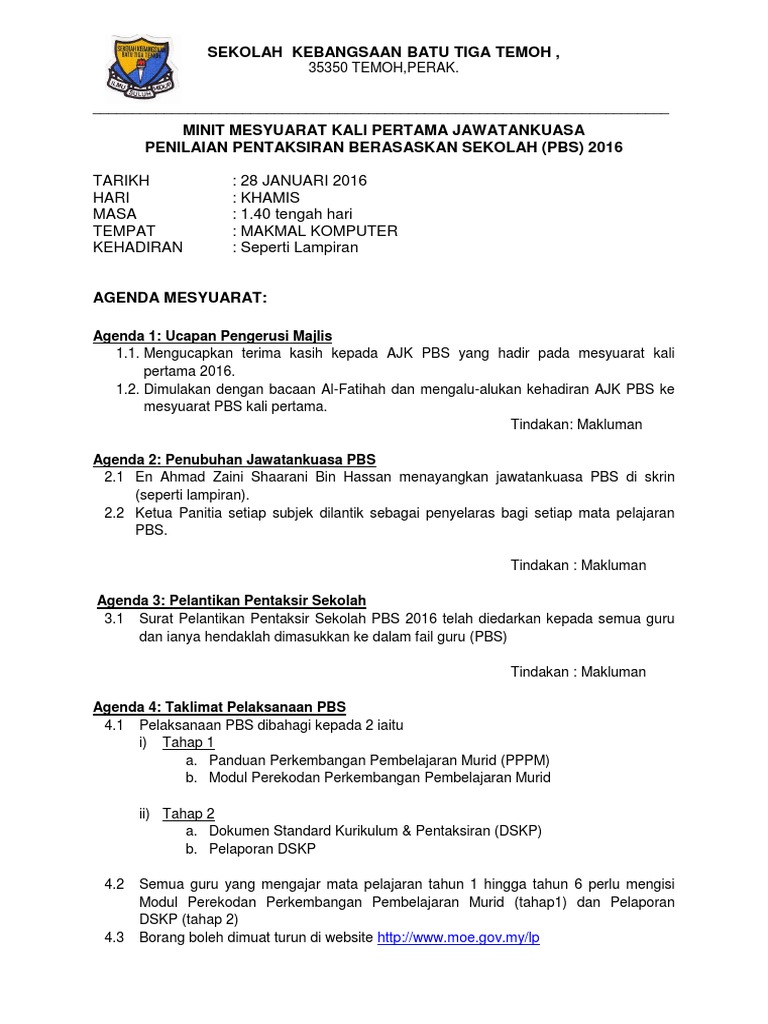 Minit Mesyuarat Pbs 1 2016